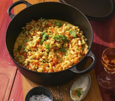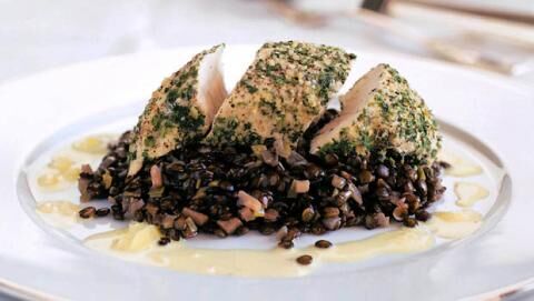 Pouletbrüstchen auf Linsen an Schaumweinsauce