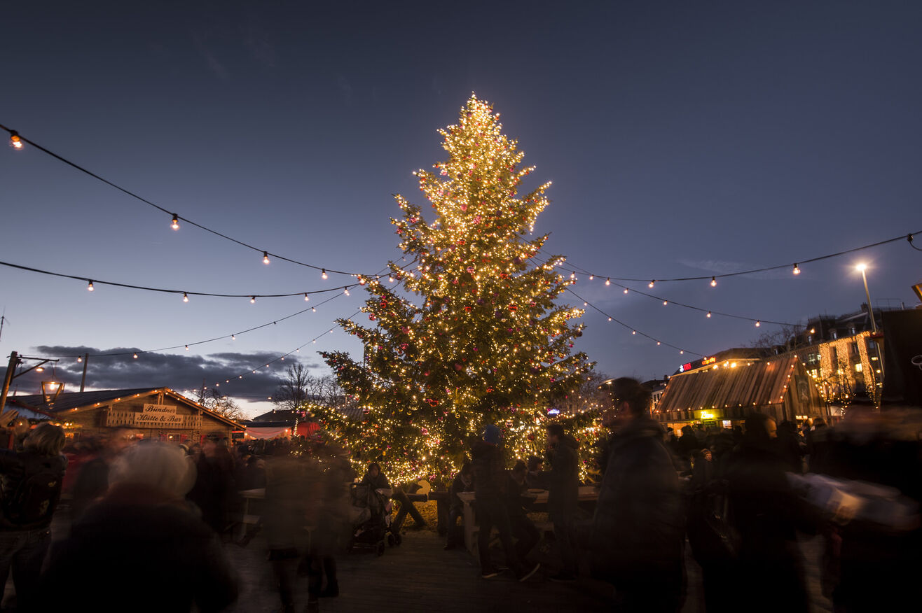 Ein kulinarisches Highlight ist die grosse Fonduestube, in der man mit Blick auf die beleuchtete Szenerie traditionelle Schweizer Küche geniesst – gemütlich, warm und voller Geschmack. Ergänzt wird das Angebot durch Street-Food-Stände mit internationalen Köstlichkeiten, süssen Versuchungen, Glühwein in allen Varianten und heissem Apfelpunsch. In der Mitte des Platzes steht ein prachtvoll geschmückter Weihnachtsbaum, umrahmt von Lichtern und feinen Tannenduft verströmend. Für Familien bietet das Wienachtsdorf ein liebevoll gestaltetes Rahmenprogramm mit Märchenstunden, Bastelangeboten, Musikauftritten, Stelzenläufern und sogar einem kleinen Eisfeld. Das Wienachtsdorf ist ein Ort der Balance – zwischen Urbanität und Tradition, Lebendigkeit und Besinnlichkeit.